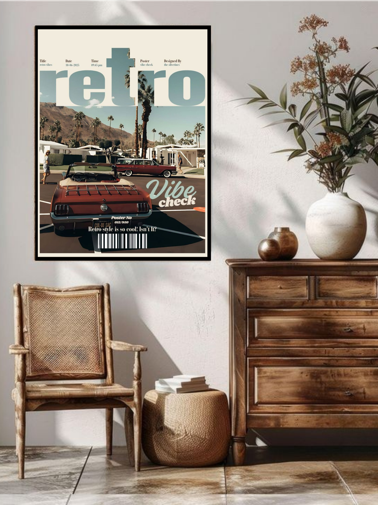 The Vintage Spectrum Poster brings back the bold shapes, faded tones, and timeless typography of classic mid-century design. With geometric patterns, warm earthy hues, and distressed textures, this artwork feels like it was pulled straight from a 70s living room or an old record store wall.